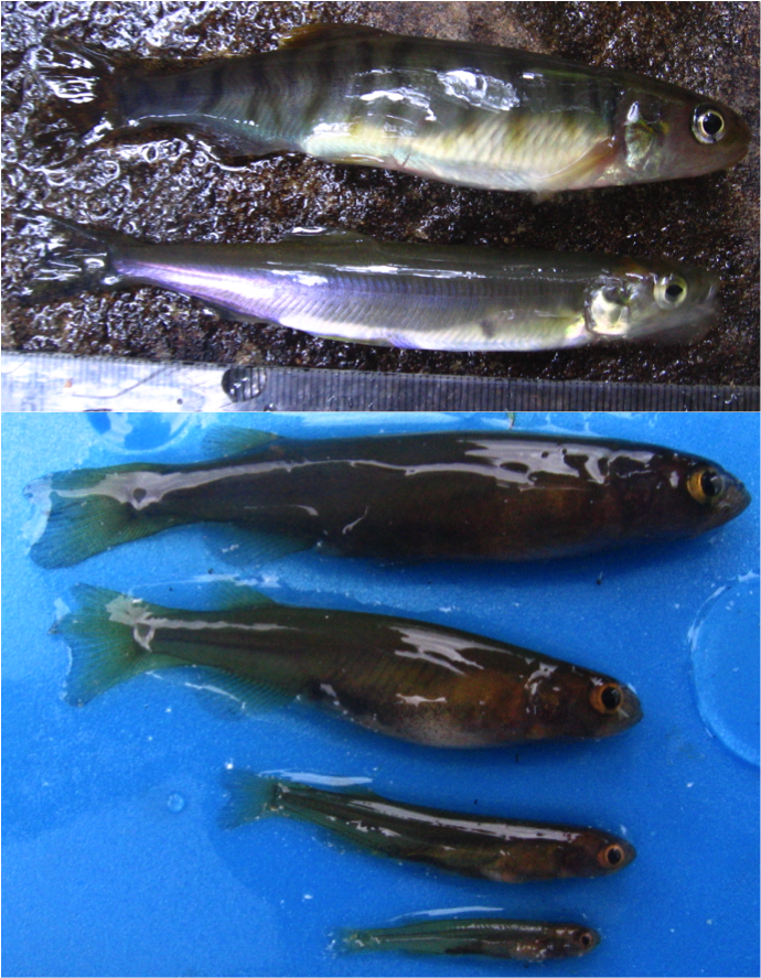 How do invasive species interact with ecologically similar native species? How do these interactions affect other trophic levels in the receiving ecosystem? What role does habitat degradation play? My work on invasion ecology started while studying the impacts of salmonid aquaculture on native biodiversity in Chile (see project site here). In Chile a raft of wonderful and horrible, established and new non-native salmonids threaten native fishes (three favourites to the left-the reddish ones are actually tiny). I have also started using invasive crayfish and European eels in the UK.